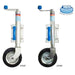 Jockey wheel with 200mm (8”) steel rim and rubber wheel. Supplied with a clamp on swing away mounting bracket. Weight capacity of 350kg and the Heavy Duty version has weight capacity of 500kg. Both jockey wheels have an extension of 250mm.