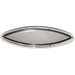 Modern eliptical shaped surface mount fixed portlight. Polished 316 grade pressed stainless steel exterior dress rim, smoked tinted acrylic lens and black trim ring incorporating a 12 mm spigot flange.
