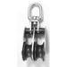Stainless steel cheek block with double, brass bushed nylon sheaves. Swivelling bale head. Heavy construction for commercial applications.