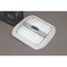 96 super bright white LEDs plus 6 blue or red LEDs for night use. Integral three position soft touch switch for 12 volt to 30 volt operation. Silver grey or white surface mount plastic housing with a clear plastic lens with no visible fastenings