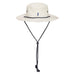 Specially designed for sailing, this quality canvas hat features a wide stiffened brim, large ventilation eyelets and an under chin cord with adjusting toggle. It also has a peak inserted in the brim at the front to stop the brim from flopping in the wind or when wet.