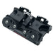 Harken ball bearing traveler cars with multipart purchases allow easy adjustment of loaded sails from the cockpit.