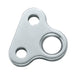 Stainless steel tack adapter tangs are used to adapt pin diameters on headstays to the standard clevis pin size that comes on the Harken Small Boat underdeck furling unit. A third hole accepts lashing to adjust jib luff tension.