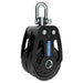 The anodised marine grade alloy cheeks capture the side thrust ball bearings which provide high sail handling efficiency and speed. The design incorporates high load capacity performance while maintaining minimal weight for large line sizes. For additional functionality, the head design features a swivel head which incorporates a locking grub screw mechanism to allow the block to be set in correct alignment.
