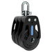 The anodised marine grade alloy cheeks capture the side thrust ball bearings which provide high sail handling efficiency and speed. The design incorporates high load capacity performance while maintaining minimal weight for large line sizes. For additional functionality, the head design features a swivel head