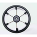 Combines both sports and traditional styling. Features six tubular stainless steel spokes and a solid simulated black or grey leather grip. Cast alloy hub accepts a standard ¾" tapered shaft. Supplied complete with polyurethane centre cover incorporating compass logo.