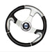 Italian manufactured three spoke wheel.Polyurethane textured hand holds. Cast alloy hubaccepts standard ¾" tapered shaft. Plastic centrecap with medallion included.