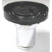 Chrome plated zinc alloy base fitted with black plastic mount flange with raised lip and cap with securing strap. Cap flange has “gas” identification.