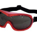 Available in Smoke, Red or Blue frames with a black head strap and buckle and comes in a cleaning cloth case.