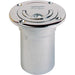 Chromium plated brass deck plate for 'FUEL' with 38 mm hose connection. Pull ring cap with chain retainer.