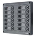 This panel features 12 on/off switches, 12 monitoring L.E.D.’s and a choice of either 12 automatic fuses or 12 tubular glass fuses of 10 A.